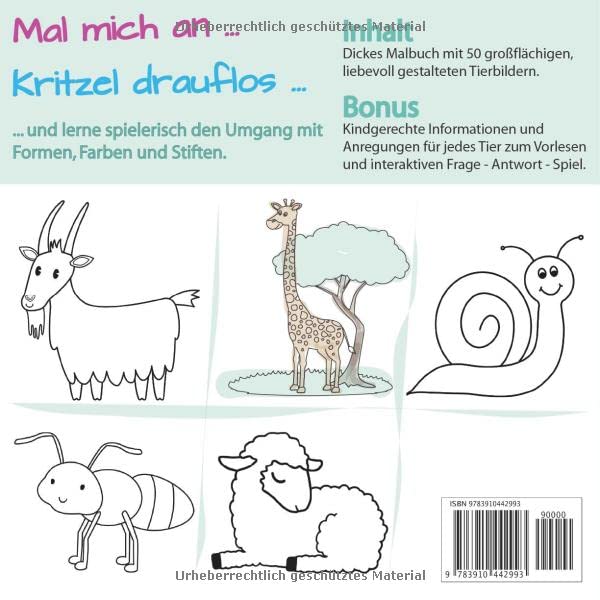 Specification: Lieblingstiere Kritzelbuch ab 2 Jahren: Dickes Malbuch für kreative Kinder mit 50 liebevoll gestalteten Tiervorlagen zum Kritzeln und Ausmalen. Taschenbuch – 10. August 2022